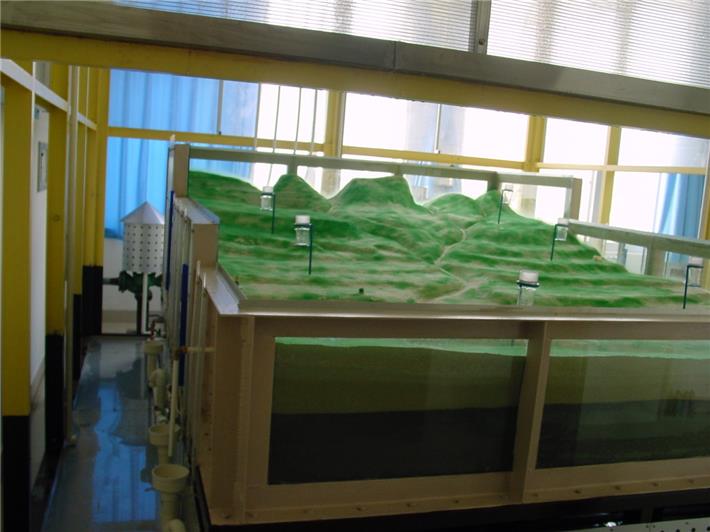 水文循环模拟实验装置在实验室内模拟水文循环过程,表现自然界物质运动、能量转化和物质循环。实验装置包含:地形模型系统、测量系统、模拟降雨系统、框架及遮雨系统、水源系统等。