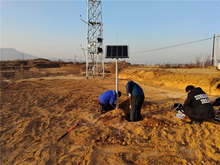 装置包含土壤水分、温度、电导、水势监测传感器,数据采集器、太阳能供电装置,远程数据中心。